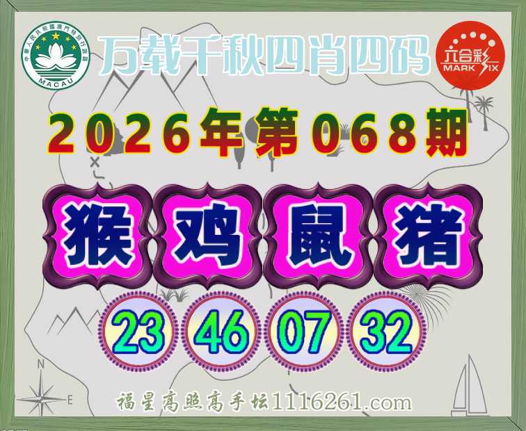 068期:〖万载千秋〗 👩‍🌾四肖四码👩‍🌾【鸡鼠猪】【23.46.07.32】开:猴23
