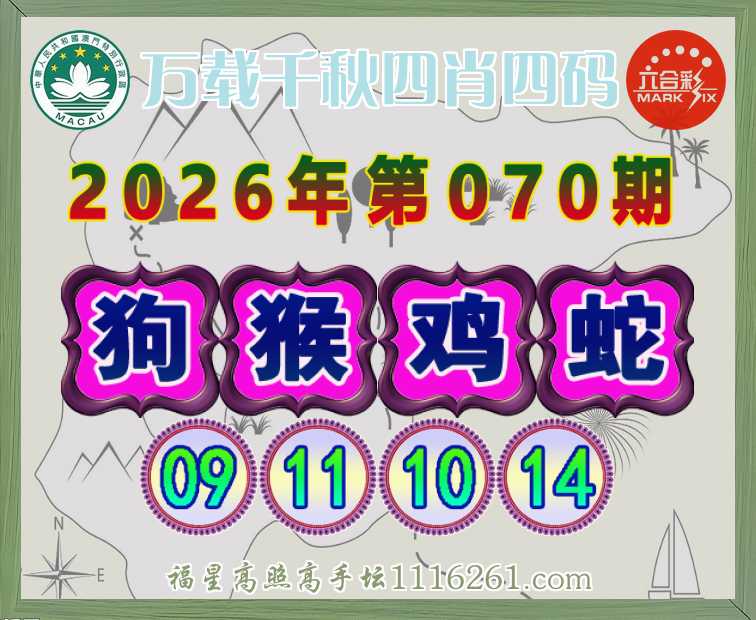 070期:〖万载千秋〗 👩‍🌾四肖四码👩‍🌾【狗猴鸡蛇】【09.11.10.14】开:马25